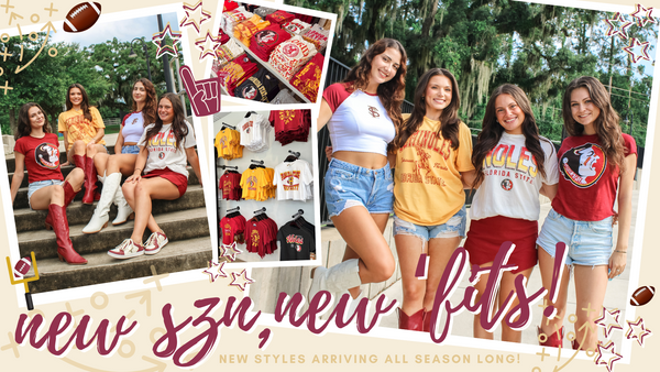 Rep the win in our exclusive FSU Champs Collection—featuring vintage vault Florida State graphics and logos on every tee and tank. From full length unisex t-shirts to classic boyfriend crops to standout game day tanks, these limited-edition pieces celebrate Seminole history in style.